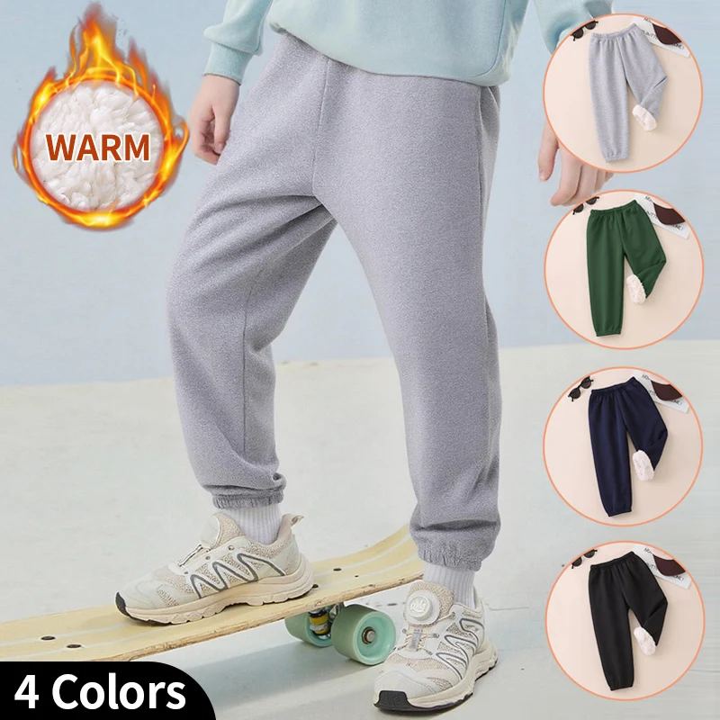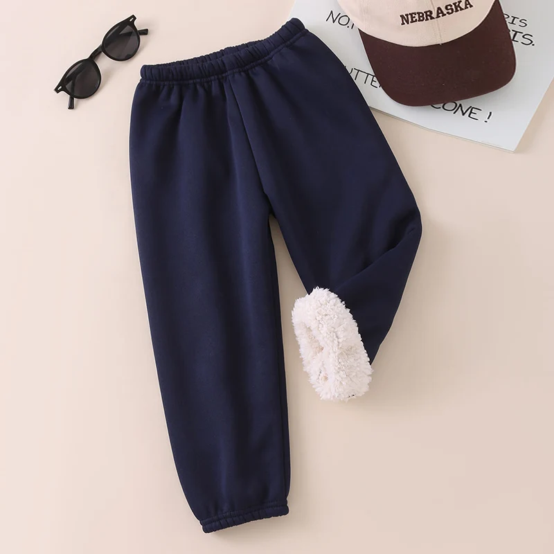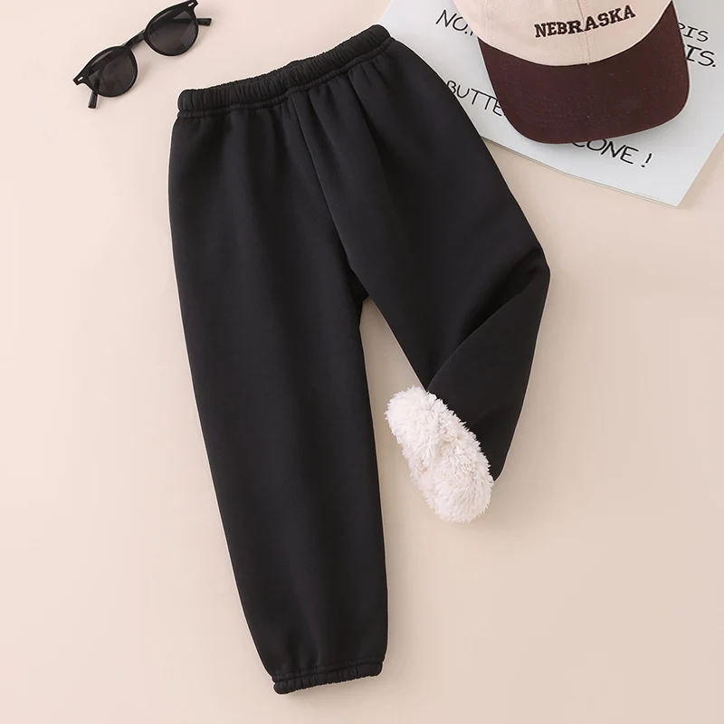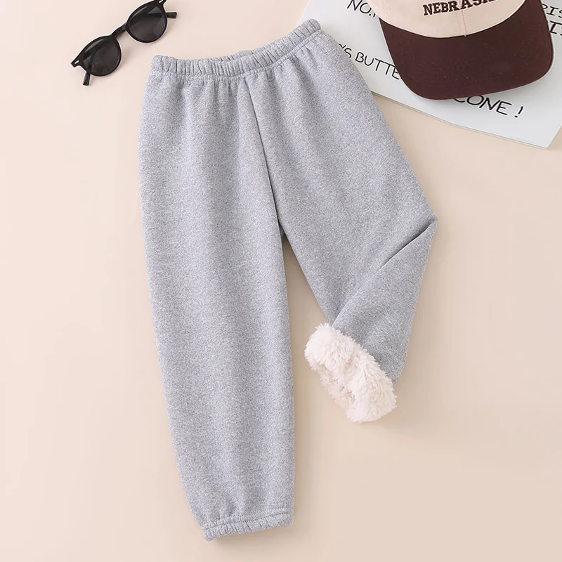 These kids plush warm pants are designed for comfort during autumn and winter seasons. The thick plush lining provides excellent insulation to keep children warm in cold weather. Windproof fabric helps block chilly air during outdoor activities. The solid color design makes the pants easy to match with various tops and jackets. A relaxed fit allows children to move freely while playing, walking, or exercising. The soft material feels gentle against the skin for all-day comfort. Suitable for both boys and girls, these pants are a versatile wardrobe essential. An elastic waistband ensures a secure yet flexible fit without discomfort. They are ideal for casual wear, sports activities, or daily outings. These fashion Harun pants combine warmth, durability, and modern style for active kids.